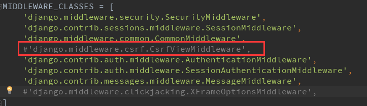 1、將django的setting中的django.middleware.csrf.CsrfViewMiddleware注釋即可。
