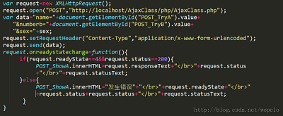 這段代碼構(gòu)造一個XHR對象的實(shí)例request,并用它來建立異步請求。在onreadystatechange事件中,我們發(fā)現(xiàn)有readyState與status兩個屬性,其中readyState獲取AJAX狀態(tài)值,其值與含義如下:
