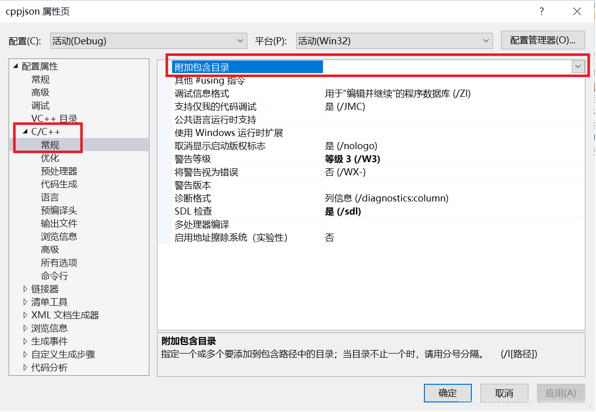 2、C/C++ --》常規(guī)–》附加包含目錄