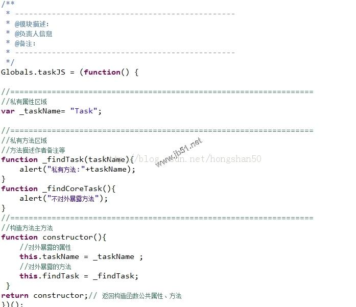 解釋一下:模塊級別的js 主要包括自己的私有屬性和方法,及對外暴露的js屬性和方法。這里我們默認凡是內部私有的前面都加“_”,最后決定哪些方法和屬性暴露出來,是通過構造方法constructor來對外暴露。