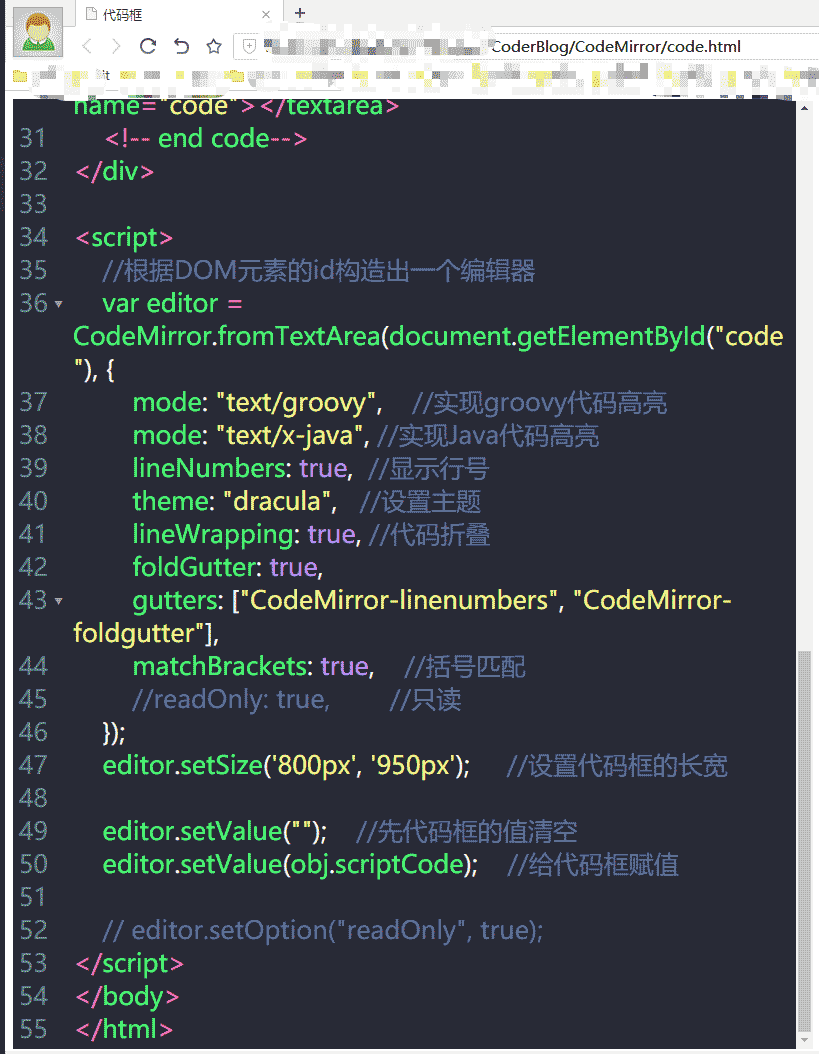 上面就大概講了下 Code Mirror 怎么使用,那么我們來看看效果吧