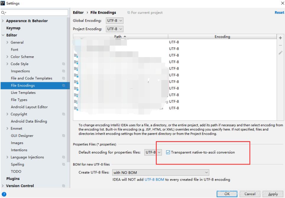 1.首先肯定是取消勾選Transparent native-to-ascii conversion,你會發現本地已經由中文字符變成了Ascii編碼。