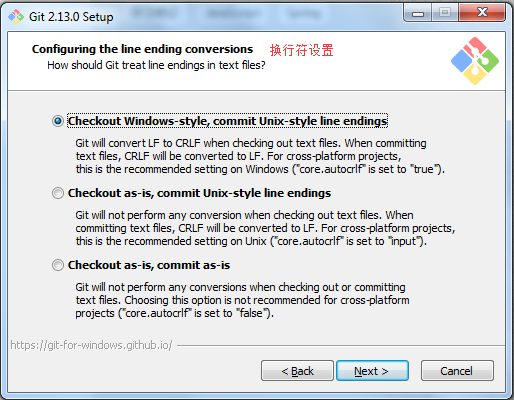 - 提交到服務器時轉換為Unix下的換行符讓Git在簽出到本地時和提交到服務器時都不做轉換