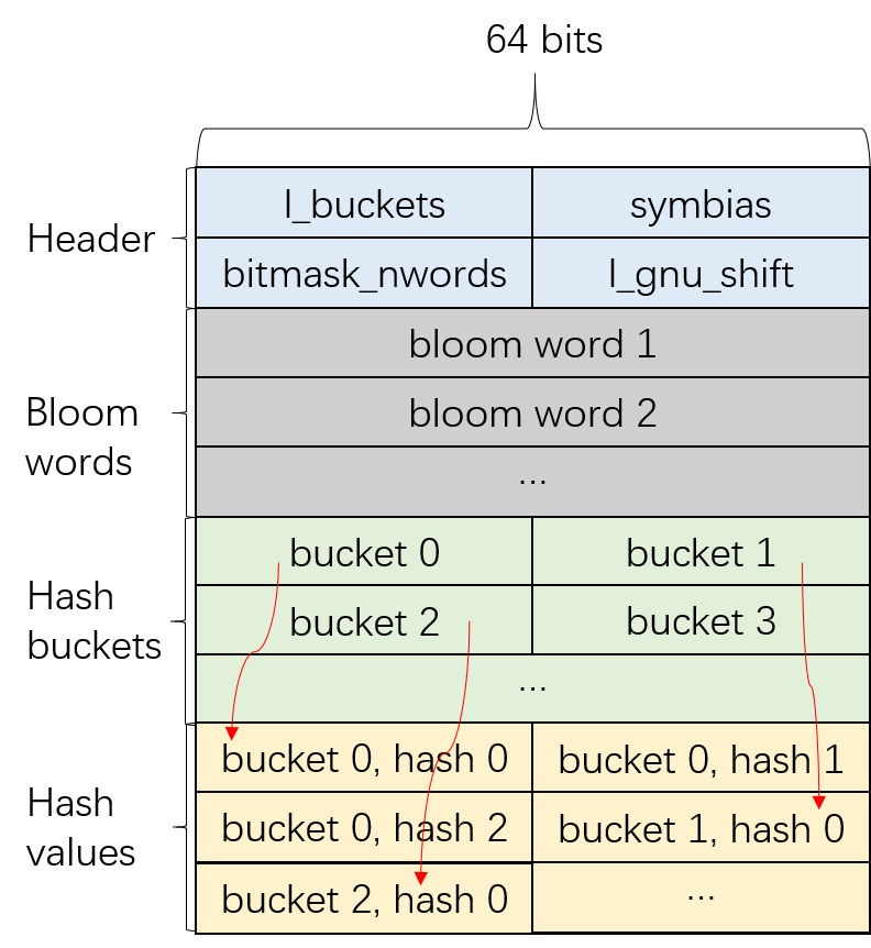 為了便于理解,將.gnu.hash節中的內容畫成示意圖: