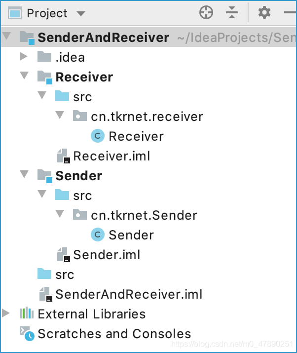 前提:創(chuàng)建一個項目,在項目中創(chuàng)建兩個模塊(model),一個模塊用來放發(fā)送方相關(guān)代碼,一個模塊用來放接收方相關(guān)代碼。