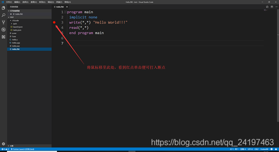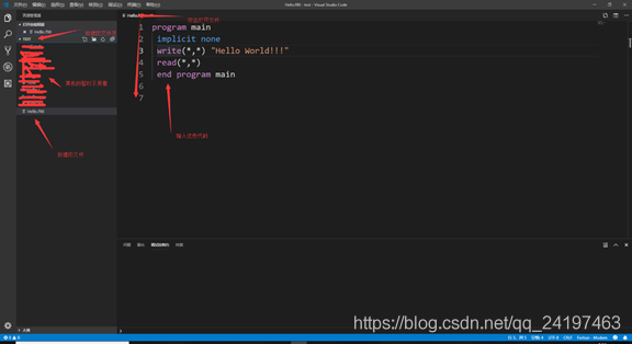 在VS code中新建一個文件夾test,要記住新建的文件夾的地址,然后新建一個文件Hello.f90,雙擊此文件輸入下列語句