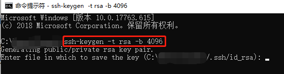 (我記得此后連敲三下Enter就完成了,密鑰id_rsa和公鑰id_rsa.pub文件都默認(rèn)保存在(C:\User\用戶/.ssh)文件夾下)