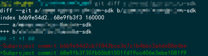 正常情況下,修改子倉庫的內容并在子倉庫提交后會在父倉庫執行 git diff會有如下輸出