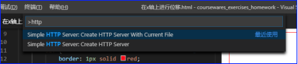 也可以安裝http server插件,安裝完成后按下f1,然后輸入http會看到下面兩個選項,選擇with current file那個能夠創建一個服務器運行當前文件。另外一個會找當前目錄下的index.html,然后打開它。