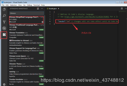 - 安裝: 在左邊最下面是哪個圖標點擊搜索插件進行安裝即可。