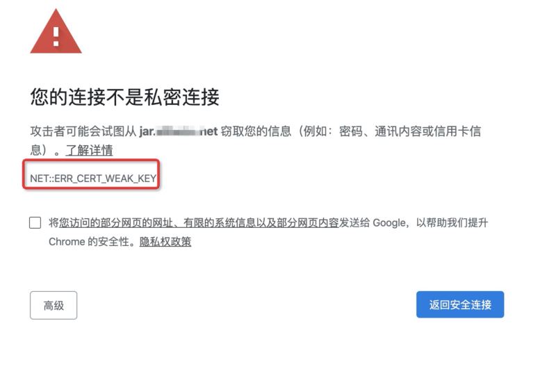 巨人網(wǎng)絡(luò)通訊聲明:本文標題《解決Chrome在新版MacOS上報錯 NET::ERR_CERT_WEAK_KEY 的問題》,本文關(guān)鍵詞 解決,Chrome,在,新版,MacOS,;如發(fā)現(xiàn)本文內(nèi)容存在版權(quán)問題,煩請?zhí)峁┫嚓P(guān)信息告之我們,我們將及時溝通與處理。本站內(nèi)容系統(tǒng)采集于網(wǎng)絡(luò),涉及言論、版權(quán)與本站無關(guān)。
