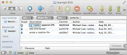 每提交一個新版本,實際上Git就會把它們自動串成一條時間線。如果使用可視化工具查看Git歷史,就可以更清楚地看到提交歷史的時間線: