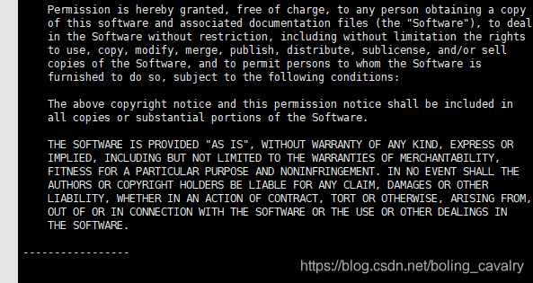遇到license時,像是用vi工具那樣,輸入":",再輸入"q"回車,就能跳過license閱讀,執行真正的安裝操作了: