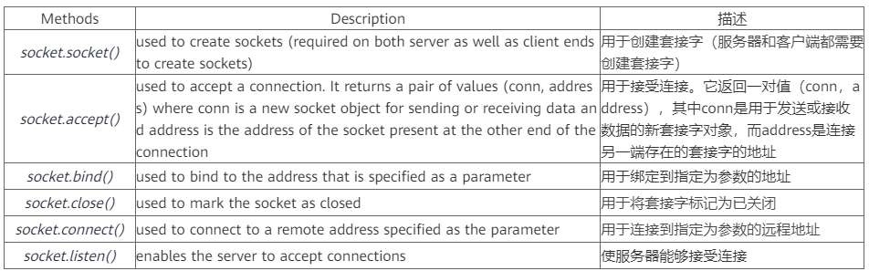 現在您已經了解了套接字的概念,現在讓我們看一下Python的Socket模塊:
