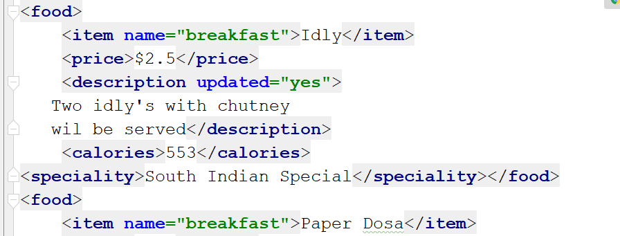 item name="breakfast">Idly/item>