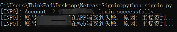 到此這篇關(guān)于Python模擬登錄網(wǎng)易云音樂(lè)并自動(dòng)簽到的文章就介紹到這了,更多相關(guān)Python模擬登錄并簽到內(nèi)容請(qǐng)搜索腳本之家以前的文章或繼續(xù)瀏覽下面的相關(guān)文章希望大家以后多多支持腳本之家!