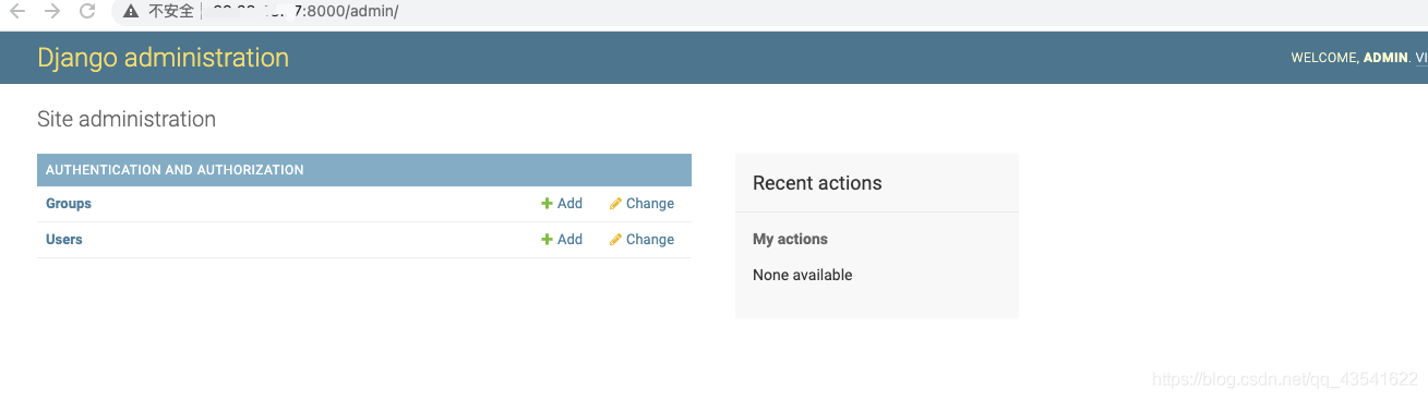 IP(自己的IP):8000/admin/ ##admin為創建的超戶