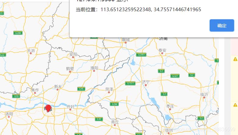 alert("當前位置:" + e.point.lng + ", " + e.point.lat);