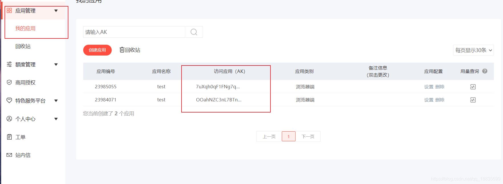 準備工作已經完成 在使用中只需要將(AK)碼 (即密鑰)寫入代碼中即可