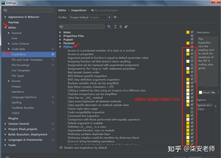 選擇File---settings---Editor---選中Inspections,在右邊框中選擇Python