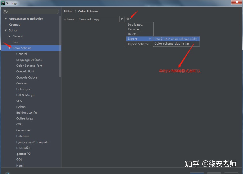 選擇File---settings---Editor---選中Color Scheme,在Scheme欄進(jìn)行導(dǎo)出