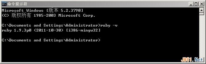打開CMD窗口,運行 ruby -v 顯示ruby當前版本號。如圖