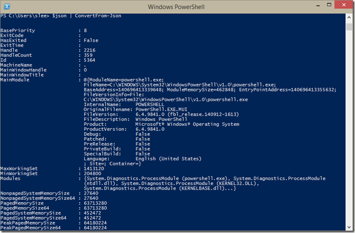 我可以使用ConvertFrom-JSON的,使之在PowerShell中更像模像樣: