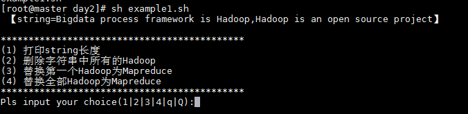 執行腳本后,打印輸出string字符串變量,并給出用戶以下選項:
