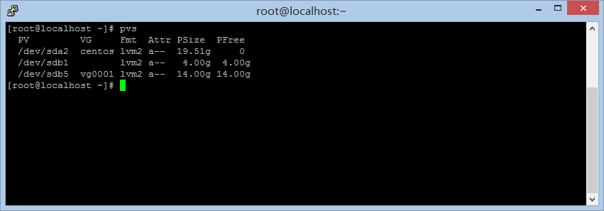 #vg0001是卷組的名字,卷組的成員有/dev/sdb1 /dev/sdb2 /dev/sdb5
