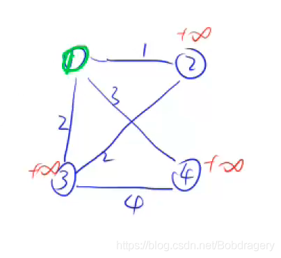1、先初始化所有點距離為正無窮