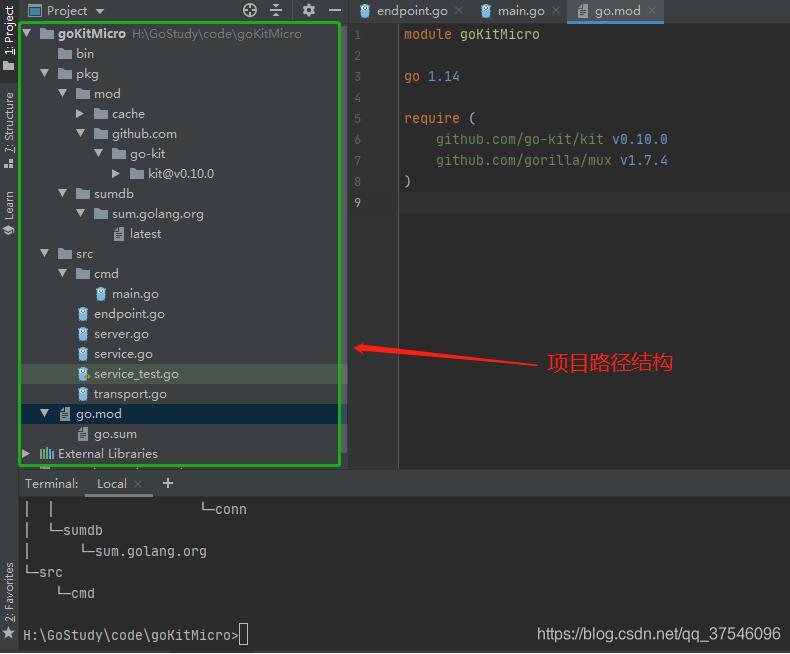 問題描述:在學習github的gokit微服務項目過程中,使用GoLand導入項目文件,但配置自定義包和第三方包時,雖能正常go get,且在./pkg/mod/github.com目錄下能找到對應的下載文件,但仍無法import成功;報package xxx is not in GOROOT的錯誤;同時出現 $GOPATH/go.mod exists but should not 的錯誤;go mod init提示outside GOPATH;