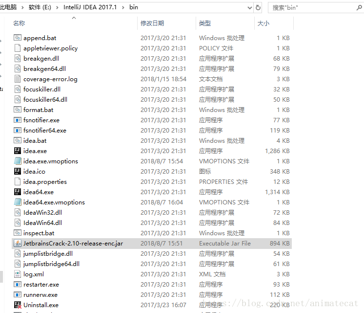 2.將你下載好的JetbrainsCrack-2.10-release-enc.jar拷貝到你的Idea安裝目錄的bin目錄下。