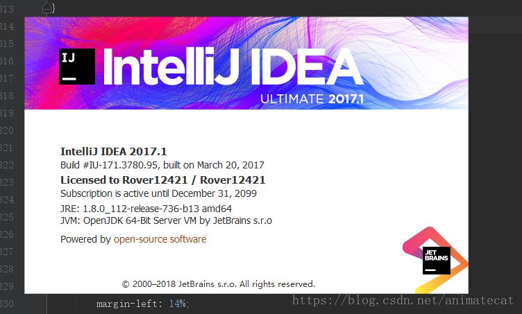7.idea上方菜單欄點擊help>About,可看到有效期到2099-12-31