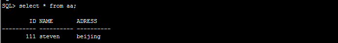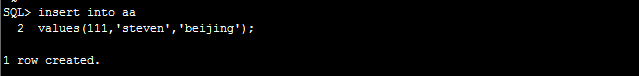 SQL> insert into aa 2 values(111,'steven','beijing');