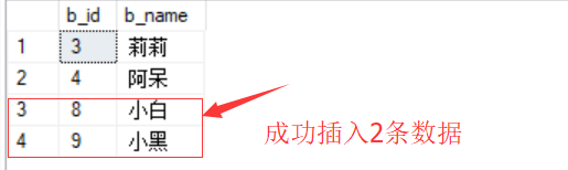 insert into b1(b_id,b_name) values(2,'阿呆')