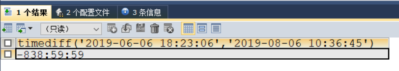 SELECT TIMEDIFF('2019-06-06 18:23:06','2019-08-06 10:36:45')