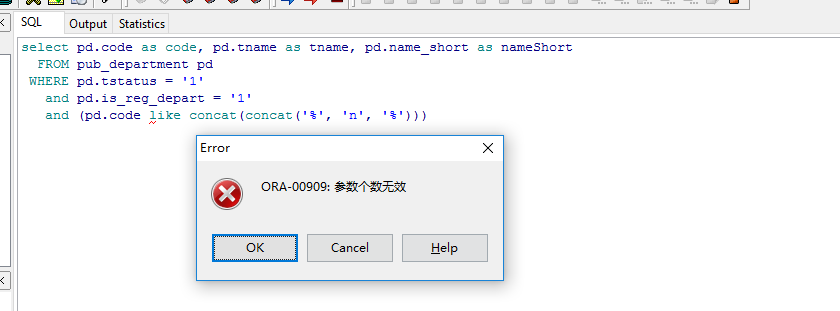 java.sql.SQLSyntaxErrorException: ORA-00909: 參數(shù)個(gè)數(shù)無效