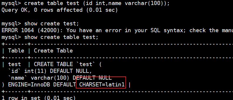 每次利用終端 創建數據庫或者創建表的時候,字符集都是latin1,或者進行插入值的時候,顯示的是亂碼(不指定字符集的時候)如下: