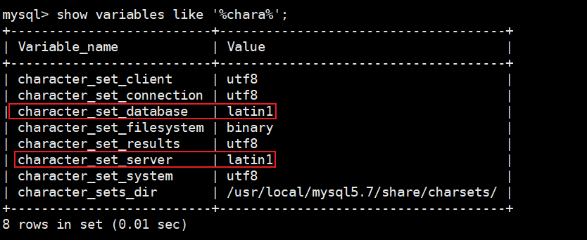 character_set_server:數據庫服務器的默認字符集