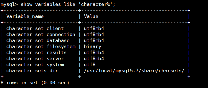 character_set_filesystem:把os上文件名轉化成此字符集,即把 character_set_client轉換character_set_filesystem, 默認binary是不做任何轉換的