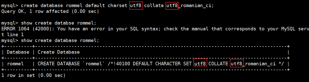 create database rommel default charset utf8 collate utf8_romanian_ci;