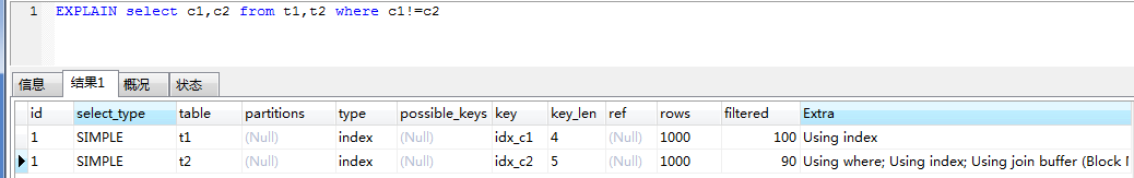 例如,有2個(gè)未索引的表t1、t2、分別只包含列c1、c2 每個(gè)表分別含有1000行數(shù)據(jù)組成,值為111的數(shù)值,然后設(shè)置三張表,不同的幾個(gè)值,