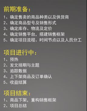 其實項目流程是貫穿始末的,以上幾點在一定程度也包含在內。有的是同步進行,視情況而定。時間節點包括以上幾點的確定時間,活動預熱及推文的審核發布時間。主要涉及人員至少有: