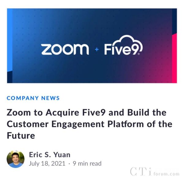 作為Zoom的首席執(zhí)行官,我很高興地宣布,我們已達(dá)成協(xié)議,收購智能云聯(lián)絡(luò)中心的領(lǐng)先供應(yīng)商Five9.有關(guān)此新聞的更多詳細(xì)信息,請參閱我們的新聞稿。