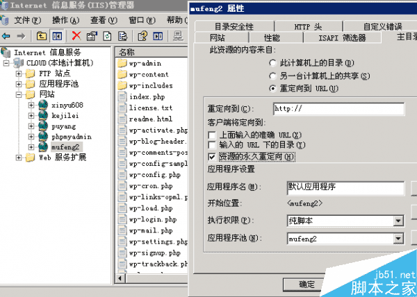 * 找到網站,點擊屬性,找到重定向到URL(U),
