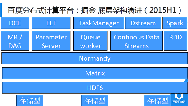 2015年的架構(gòu)改進(jìn),主要是將所有的計(jì)算模型均遷移到Matrix+Normandy架構(gòu)。Normandy兼容社區(qū)Yarn調(diào)度接口,開源社區(qū)新型興計(jì)算平臺可以很輕松的接入到百度的計(jì)算生態(tài)里。