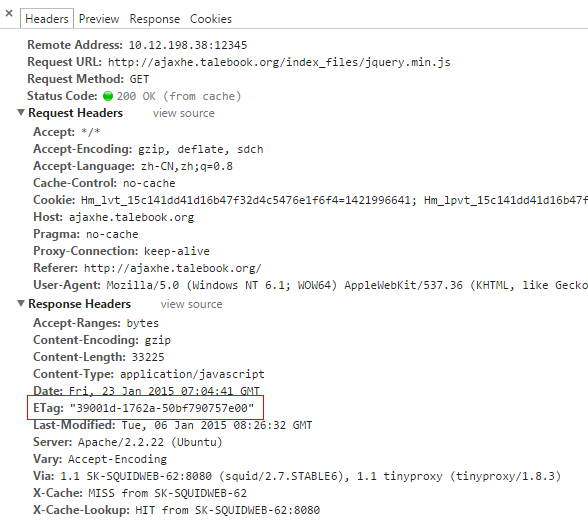 服務(wù)器返回ETag標簽: