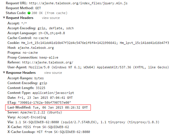 1. 瀏覽器:Hey,我需要jquery.min.js這個文件,如果是在 Tue, 06 Jan 2015 08:26:32 GMT 之后修改過的,請發(fā)給我。