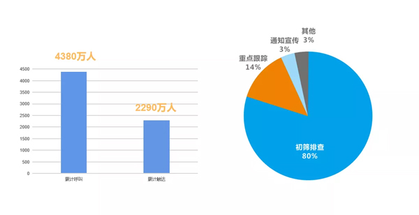 在這個非常時期,遠傳【智能防疫信息通知和采集平臺】以及【智能防疫機器人】的服務數據見證了UTRY團隊“不畏艱險、砥礪前行,始終以客戶的關鍵任務需求為己任”的工作態度。從2020年1月30日開始至今,遠傳支撐防疫項目共計30個,累計呼叫4380萬人,觸達2290萬人,平均接通率52.28%。通過有效的信息觸達及信息采集,遠傳智能防疫產品助力社區及企業落實調研人員近期行蹤、人員往來摸排;重點人員健康監測和跟蹤保障;政策法規宣傳等工作。