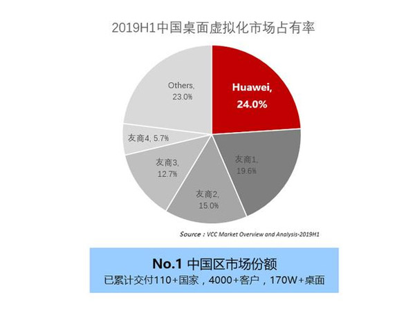 引領辦公數字化轉型,自從FusionAccess推出以來便以安全可控、卓越體驗及敏捷高效的特點贏得了客戶青睞。IDC發布的《PRC VCC Software Tracker 2019H1》報告顯示,FusionAccess以24%的市場份額連續多年保持第一。截至目前,FusionAccess已服務全球4000+客戶,110+國家和地區,共發放包括華為公司自己在內170萬+桌面。